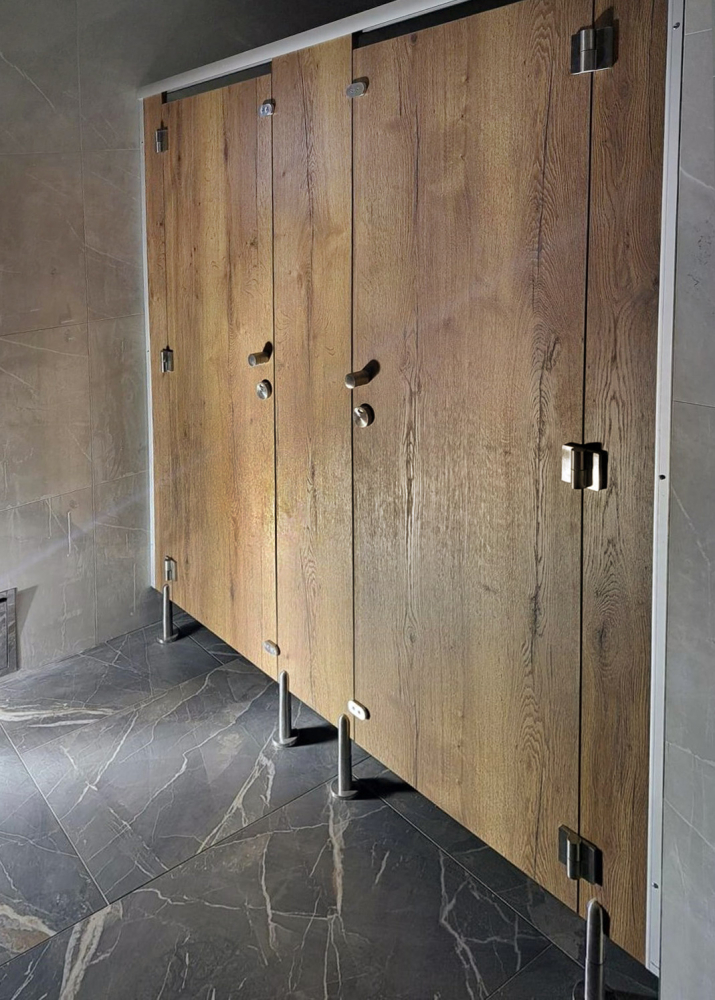 Hľadáte naozaj kvalitné riešenie verejných toaliet a spoločných prezliekarni? Vsaďte na naše sanitárne kabínky a priečky, ktoré vás milo prekvapia svojou bezkonkurenčnou kvalitou. Steny kabíniek sú vyrobené z kvalitných drevotrieskových dosiek o hrúbke 18 mm alebo 25 mm a nechýba ani špičkové nerezové kovanie AISI 304. Táto kombinácia zaisťuje kabinkám odolnosť a dlhú životnosť.