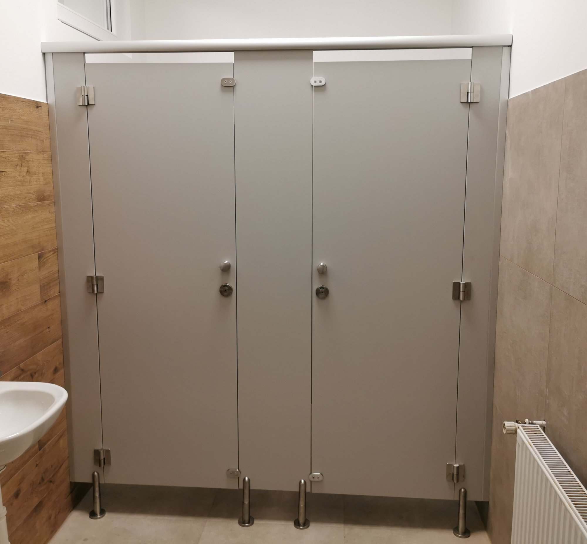 | Rozmery: | celková výška 2020 mm, šírka kabíniek podľa špecifikácie zákazníka, výška medzery od podlahy 150 mm |