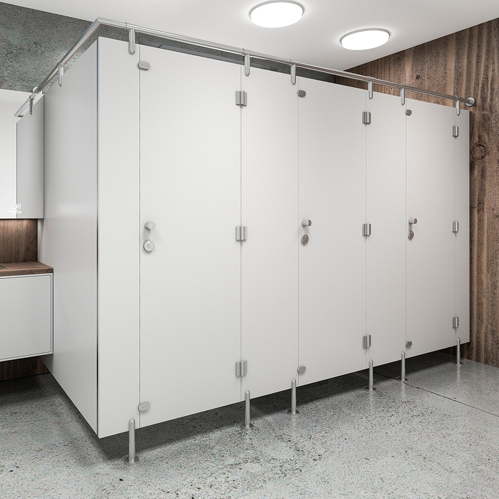 | Rozmery: | celková výška 2100 mm, šírka kabínok podľa špecifikácie zákazníka, výška medzery od podlahy 150 mmm |