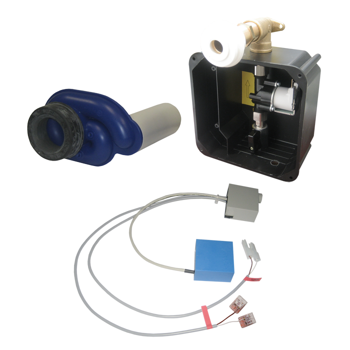 SLP 99RR - obj. č. 01992 - radarový splachovač lepený, montážny box s vtokovou armatúrou, tesnením a elektromagnetickým ventilom, sifón, napájací zdroj (SLP 99RZ - obj. č. 01995)