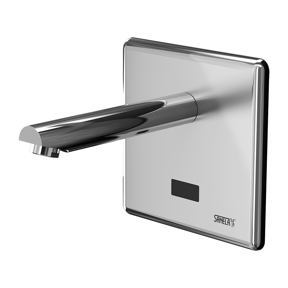 - reaguje na prítomnost rúk v snímanej zóne okamžitým spustením vody