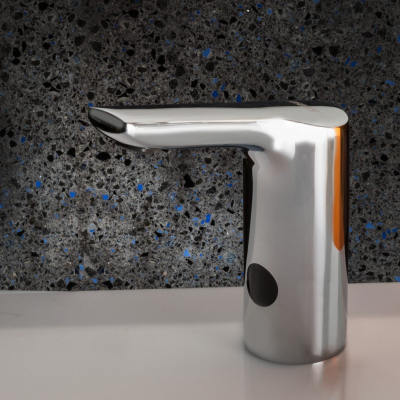 - reaguje na prítomnost rúk v snímanej zóne okamžitým spustením vody