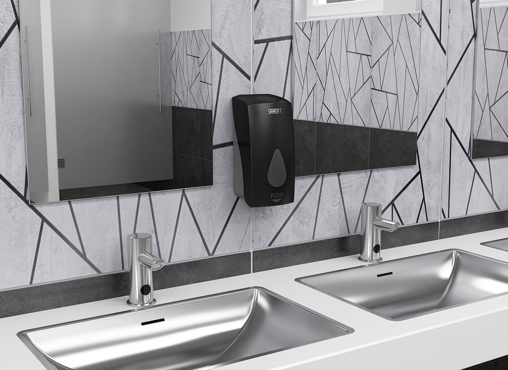 - reaguje na prítomnosť rúk v snímanej zóne okamžitým spustením vody