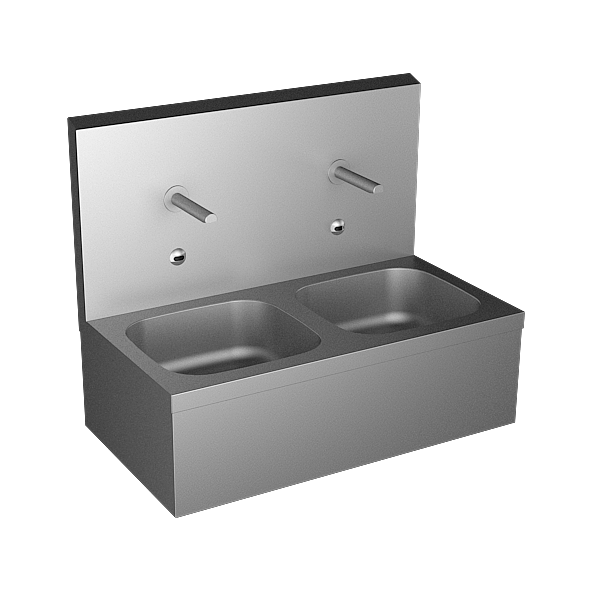 Nerezový závesný dvojdrez so zadnou stenou a integrovanými senzormi s elektronikou ALS pre prívod teplej a studenej vody, 24V DC
