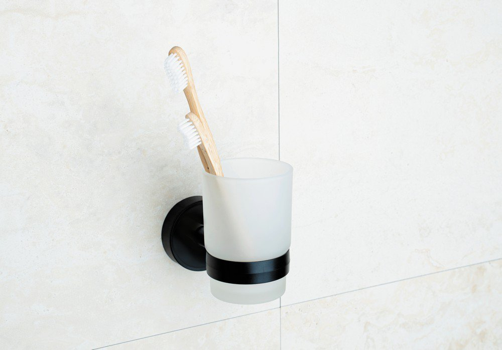 Držiak zubných kefiek nerez/sklo, povrch čierny matný